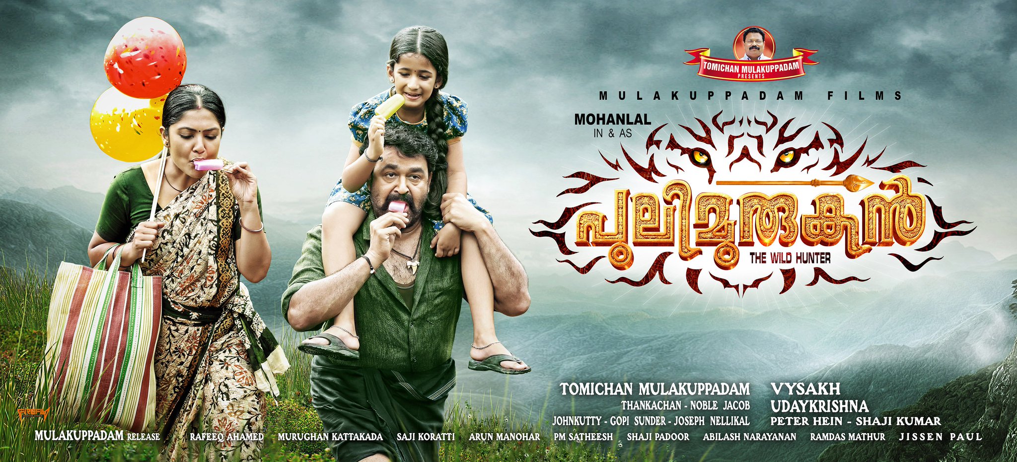 Pulimurugan Poster : Pulimurugan (aka) puli murugan is a malayalam movie with production by tomichan mulakupadam, direction by vysakh, cinematography by shaji, editing by mahesh narayanan.