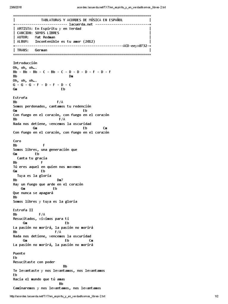 Somos Libres En Espiritu Y En Verdad Letra / Letras con traducción de en espíritu y en verdad:
