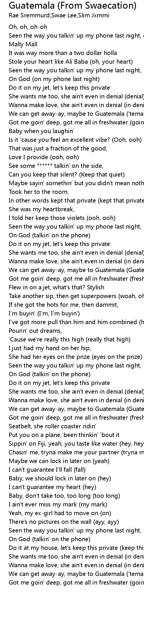Swae Lee Guatemala Lyrics - Rae sremmurd this could be us.